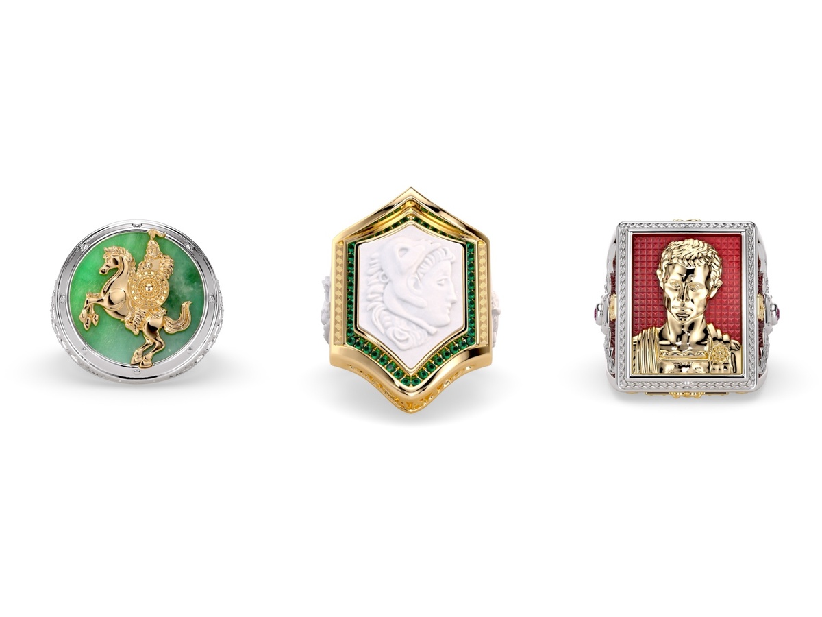 Alexandria, a new London men’s high jewellery brand, launches today with a collection of 18k gold rings inspired by men who have shaped empires. Channelling Alexander the Great, Julius Caesar, and Genghis Khan, the debut designs combine natural gemstones, guilloché grand feu enamel, and sculptural relief portraits of these historic conquerors who altered the course of civilisation.